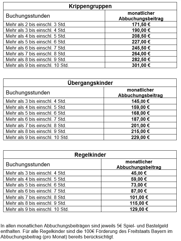 Die Höhe der Beitragskosten variieren je nach Alter des Kindes sowie der gebuchten Betreuungsdauer.